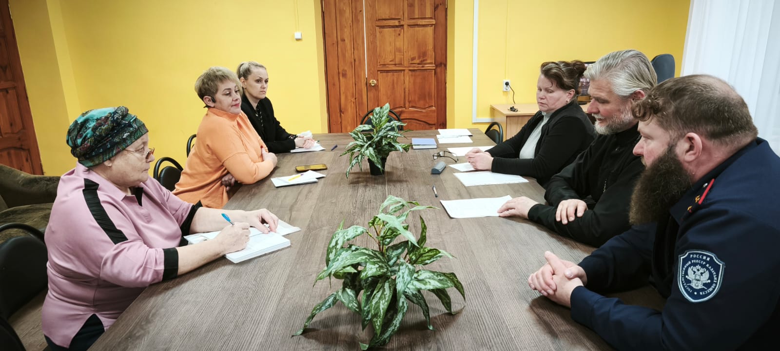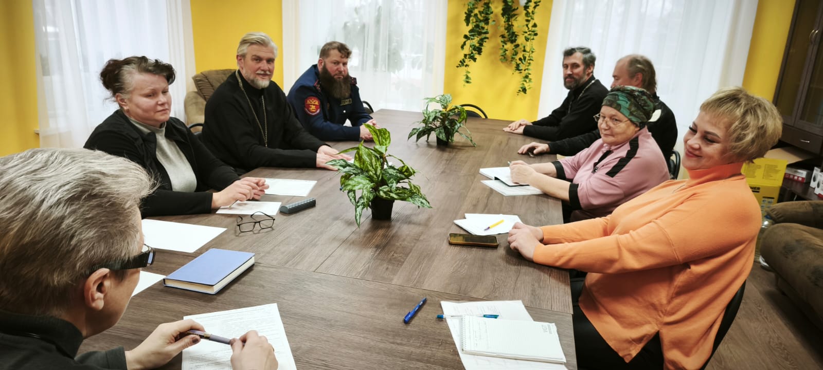Во встрече также приняли участие: благочинный Угранского благочиния протоиерей Валентин Зиньков, иерей Андрей Быков настоятель храма Вознесения Господня в д. Рыбки (Сафоновское благочиние), Прохоров А.В. сотник, атаман Гагаринского хуторского казачьего общества. Участники встречи рассмотрели актуальные вопросы и задачи касающиеся социального служения в Вяземской епархии.