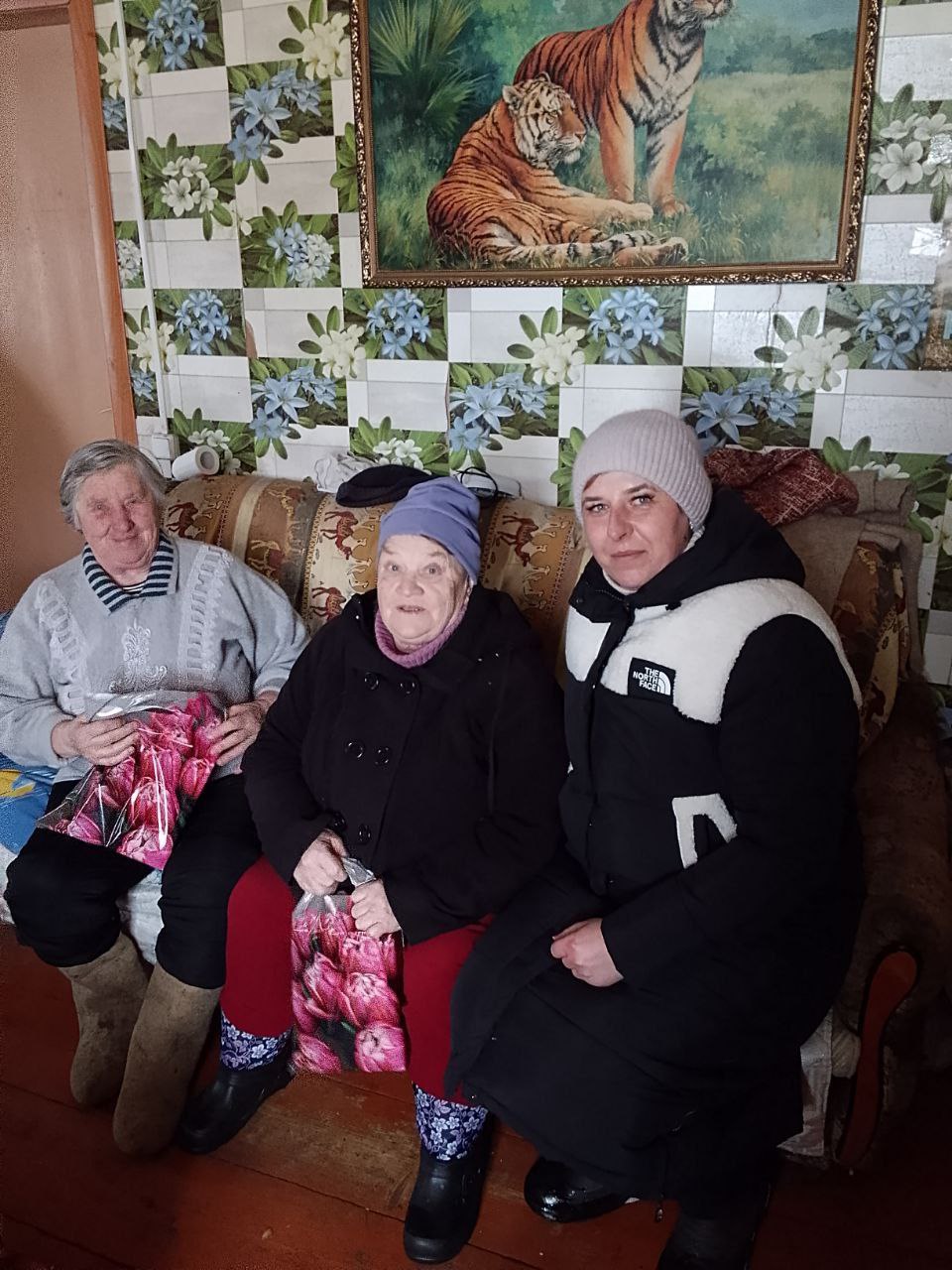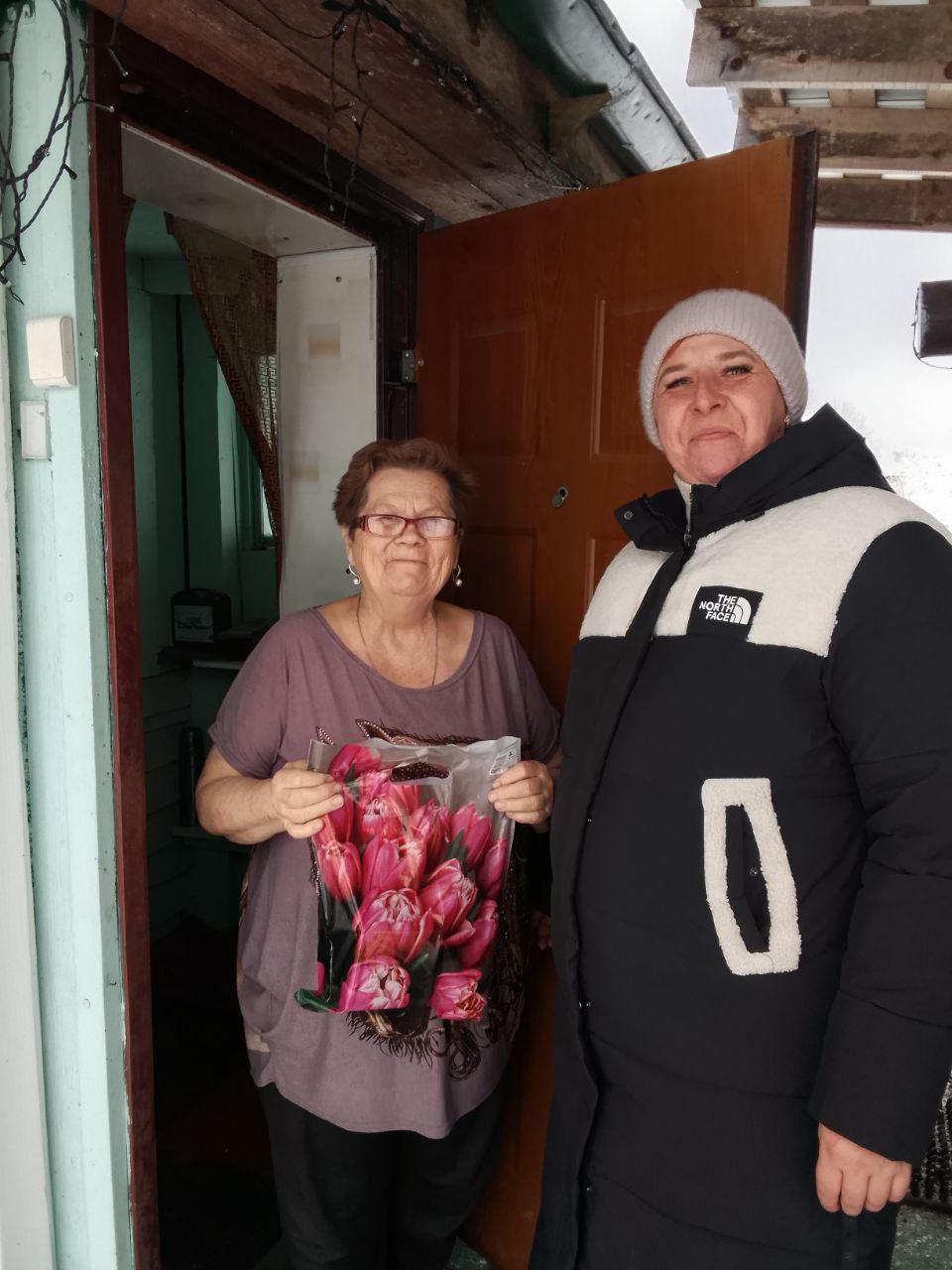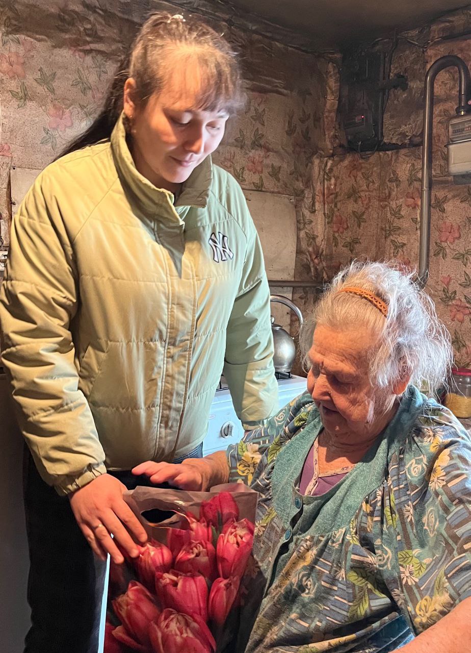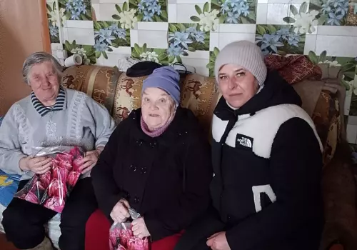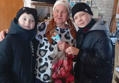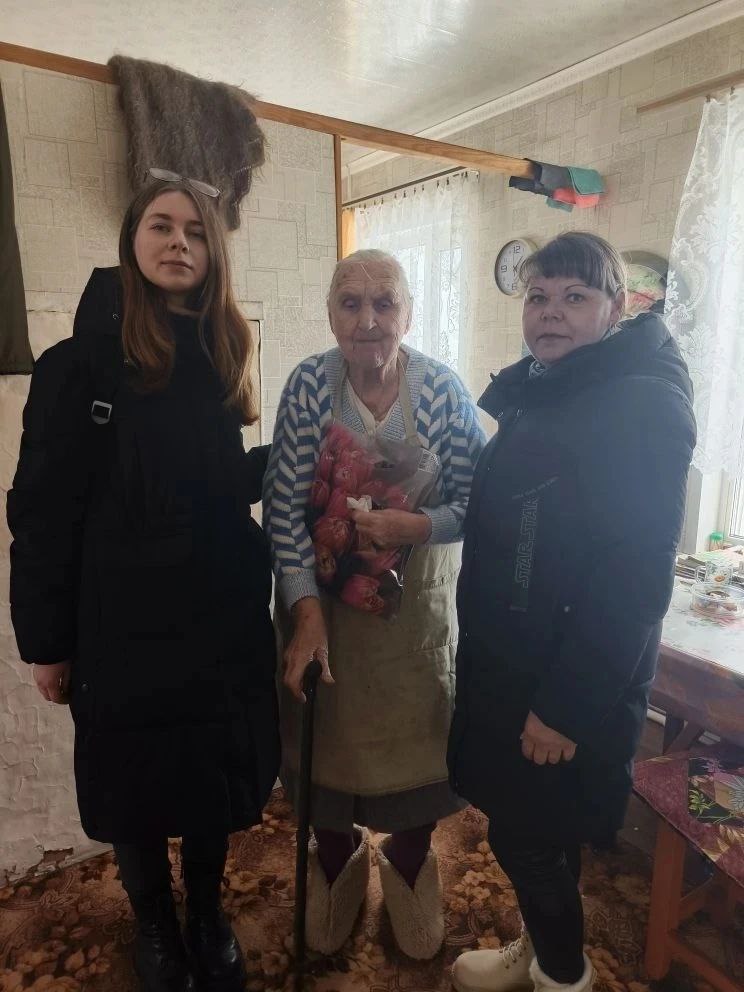 Совместно с руководителями сельских клубов волонтёры поздравили бабушек, сельских учителей, медицинских работников и женщин, которые плетут маскировочные сети для бойцов. Тёплые слова, внимание и небольшие подарки стали приятным знаком благодарности за их труд и заботу.